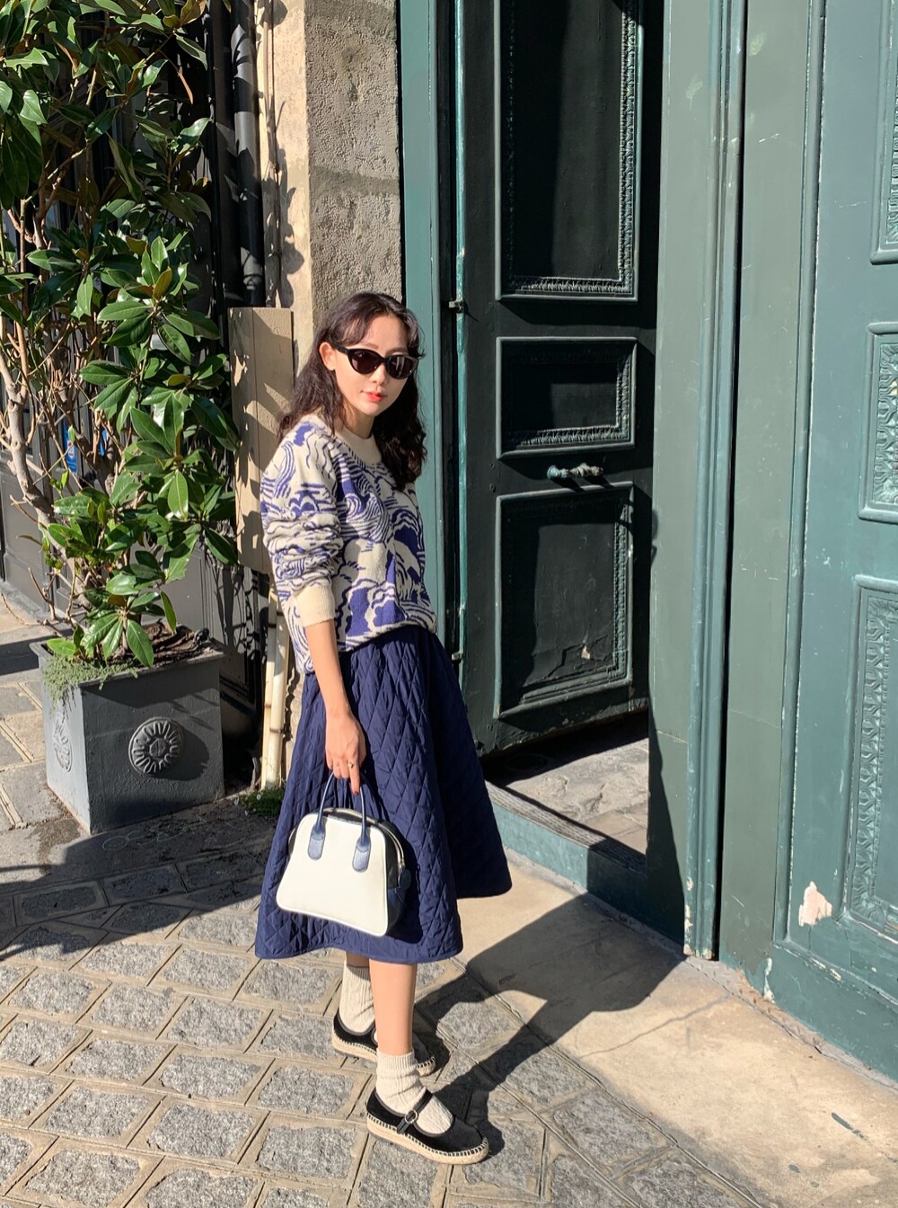 개인적으로 브라운이나 네이비 코트와 함께 입으면 너무 예쁠것 같아요 :)