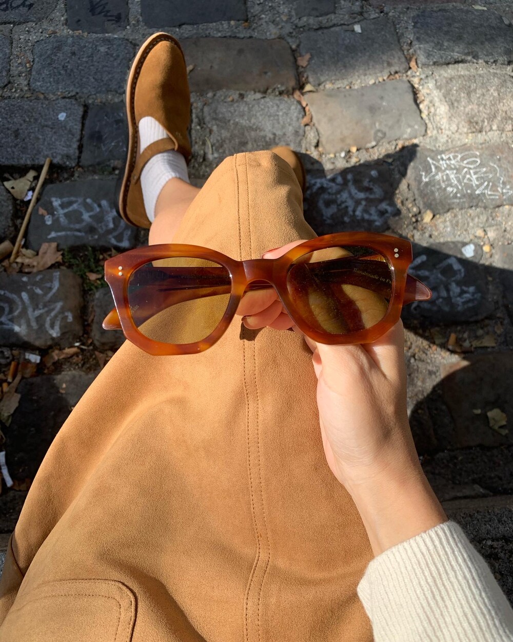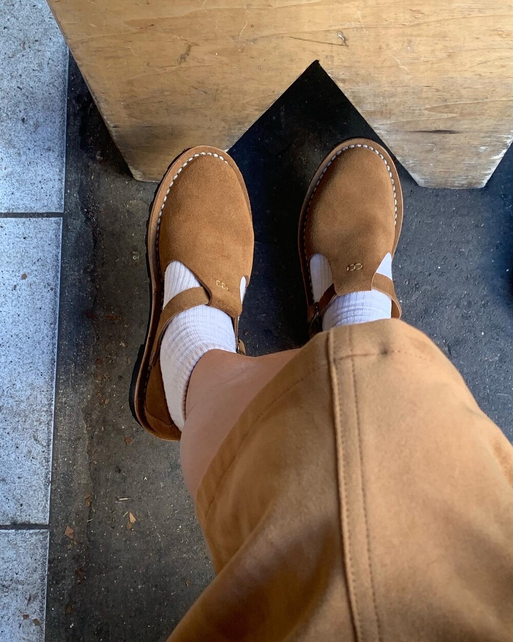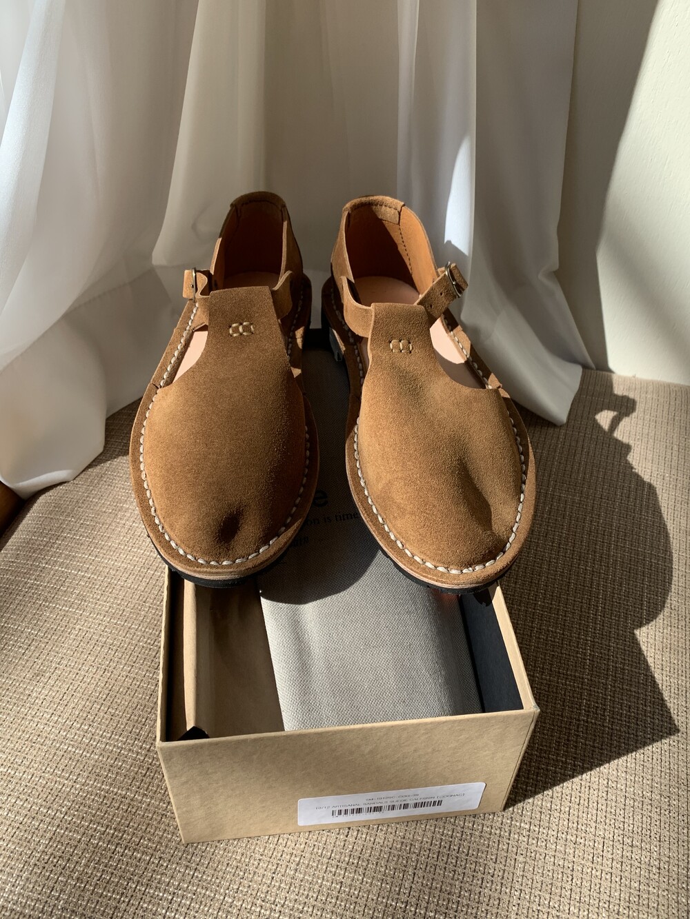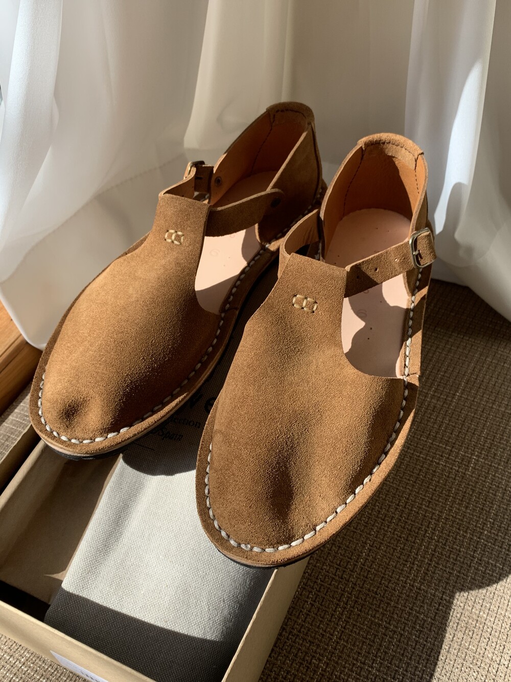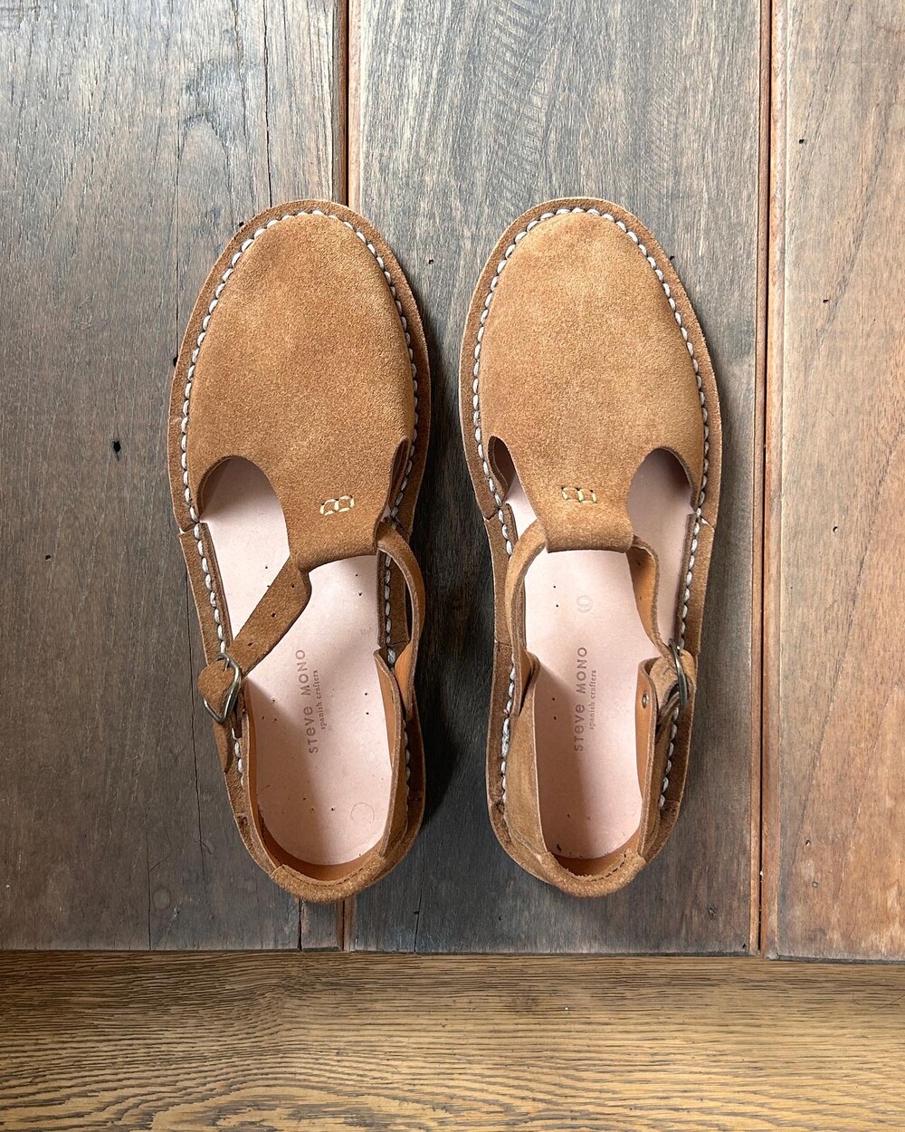 안쪽 밑창의 작은 핀 표시는 전통적인 핸드메이드 방식의 특징입니다.